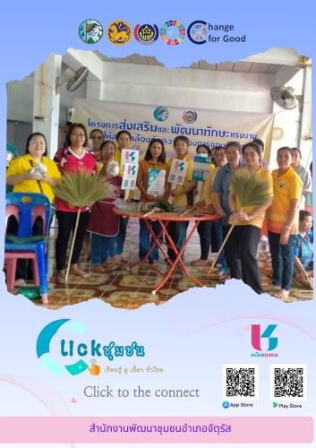สำนักงานพัฒนาชุมชนอำเภอจัตุรัสประชาสัมพันธ์การดาวน์โหลดแอปพลิเคชัน Click ชุมชน เพื่อ “เรียนรู้ ดู เที่ยว ทั่วไทย ไปกับ คลิกชุมชน” ให้กับ กลุ่มเป้าหมายอบรมโครงการส่งเสริมและพัฒนาทักษะแรงงานให้สอดคล้องกับความต้องการของตลาด กิจกรรม ชัยภูมิ ภูมิใจ ขจัดความยากจนและพัฒนาคนทุกช่วงวัย ฯ